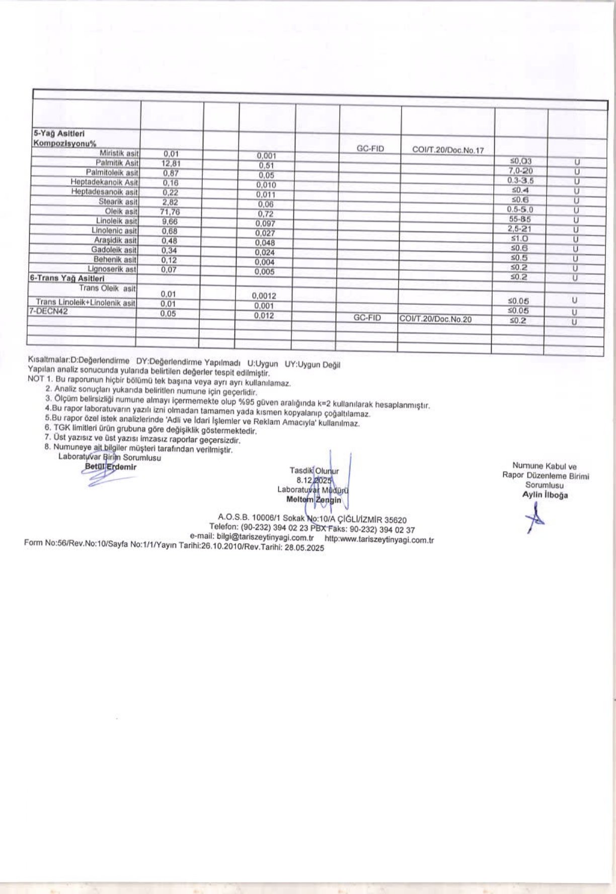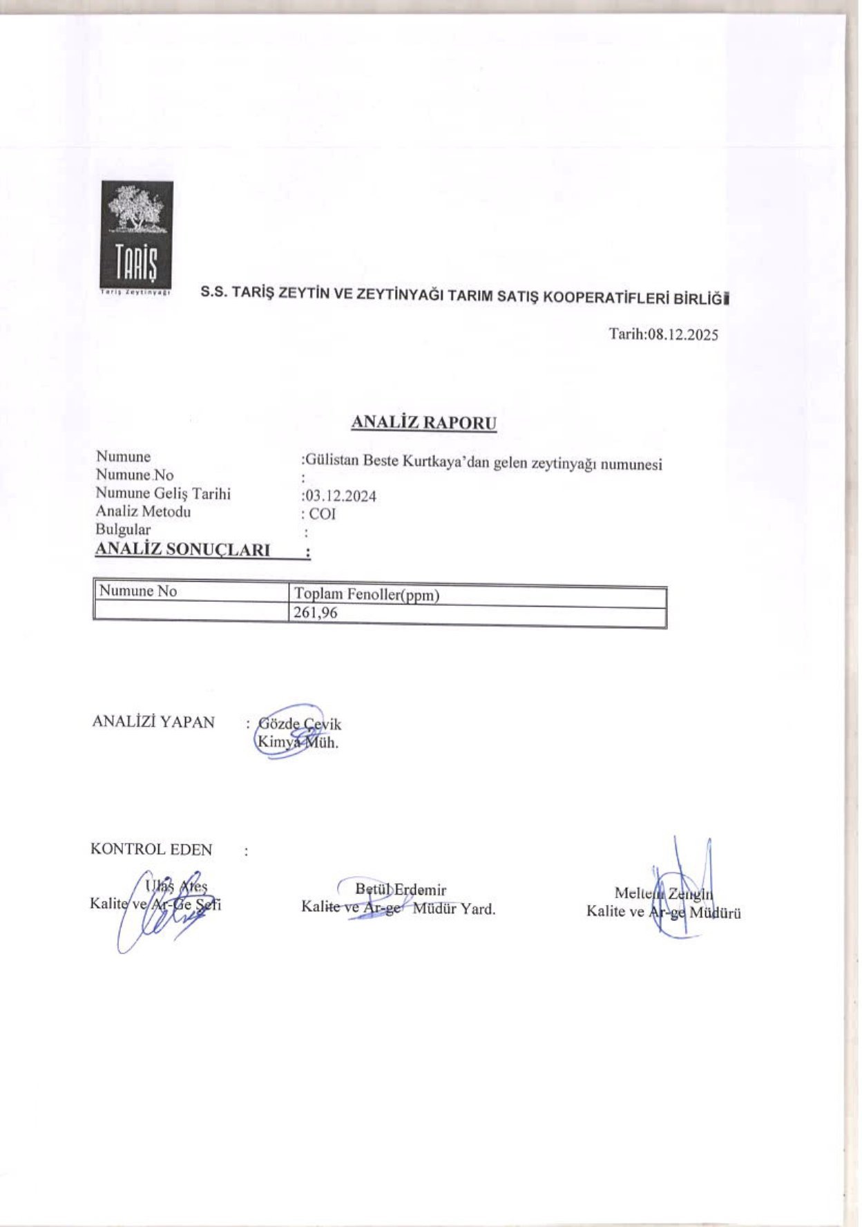 Bu analiz sonuçları, yalnızca üretim aşamasını değil; zeytinlerimizin yetiştirildiği tarımsal koşulları da kapsar.